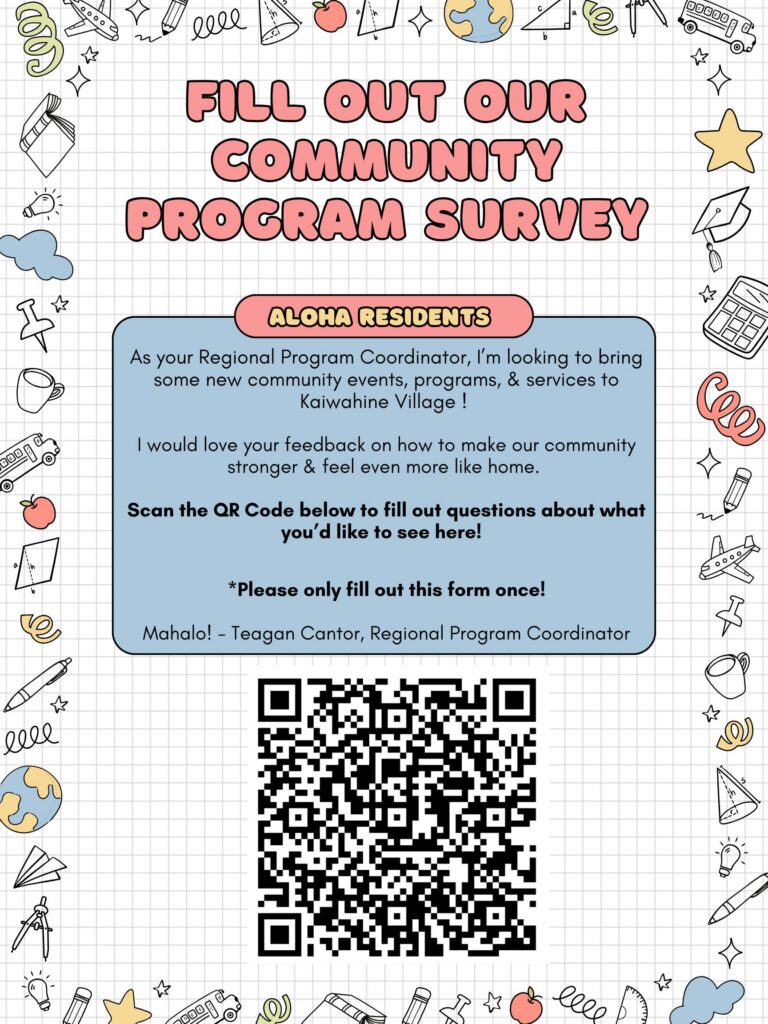 Residents, please join us for a community meeting to discuss upcoming changes for Kaiwahine Village.  Light refreshments will be provided.